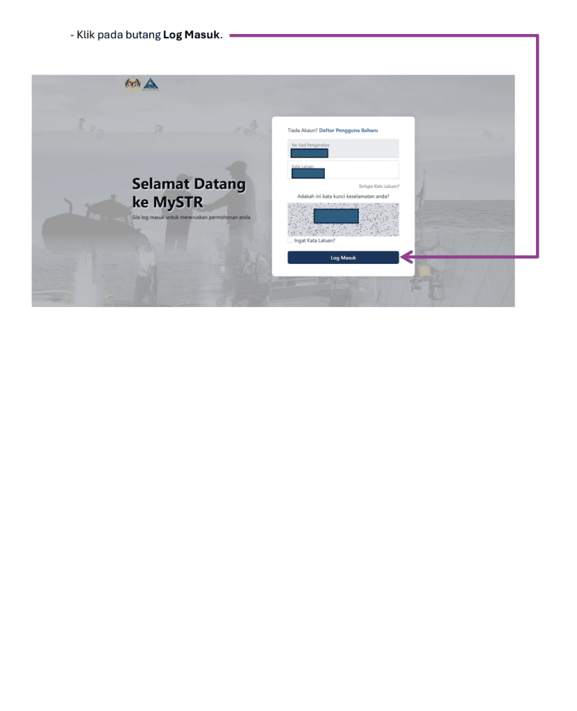3. Klik pada butang [Log Masuk] untuk ke ‘Dashboard Pemohon’.